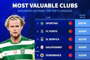 五大联赛之外欧洲俱乐部身价排名: